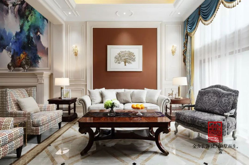 藍郡別墅裝修設計600㎡美式風格客廳設計實景圖