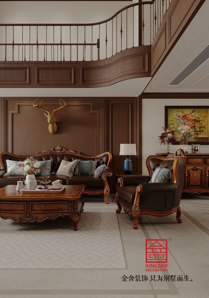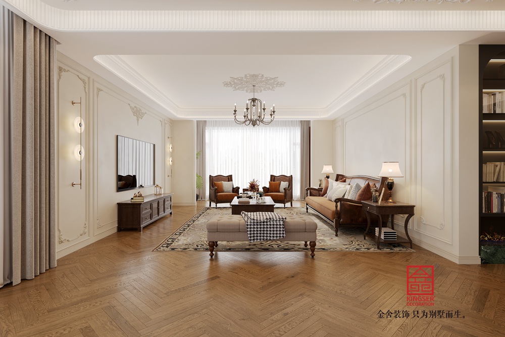 鹿泉中節(jié)能健康城美式220平米裝修-客廳