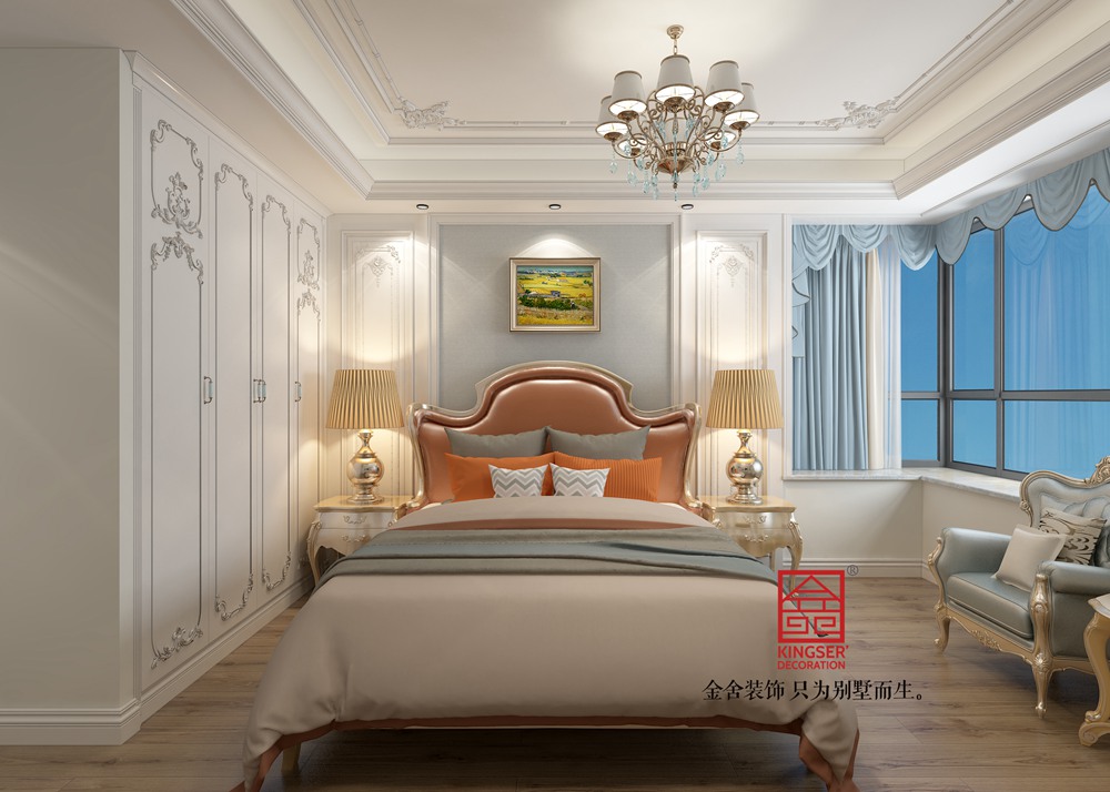 榮盛華府300平美式輕奢風(fēng)裝修-臥室