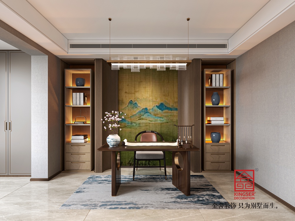 綠城桃花源450平米意式輕奢風格裝修-書房