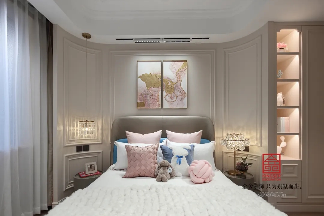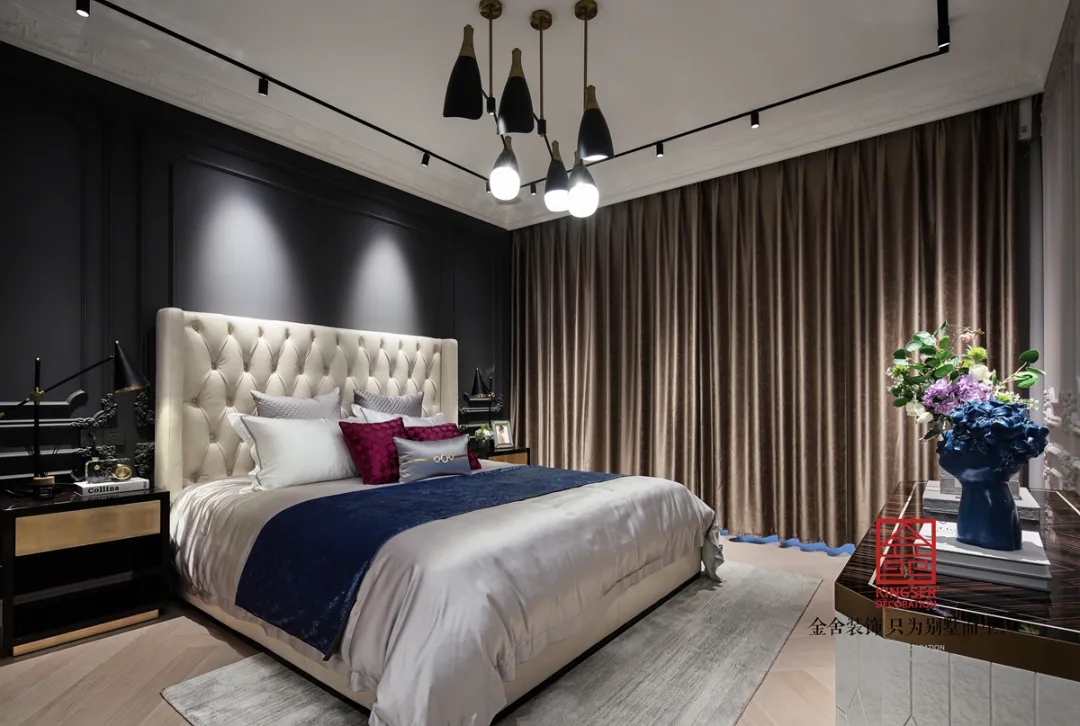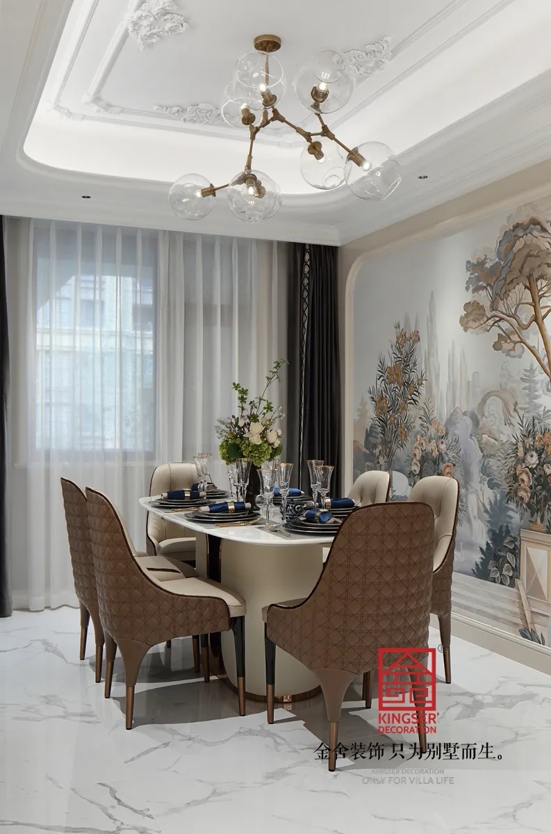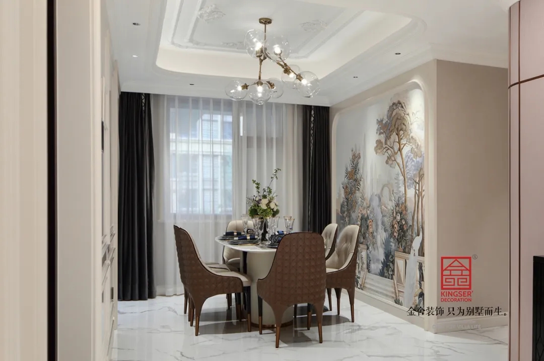 創(chuàng)意感十足的復(fù)古座椅點(diǎn)綴出家具的奢華,經(jīng)典與時(shí)尚兼具,紗幔一般的窗簾散發(fā)著溫馨的味道,窗簾以法蘭絨和紗織材質(zhì)構(gòu)成,著重色彩與肌理的把握符合整個(gè)空間的優(yōu)雅氣質(zhì)。