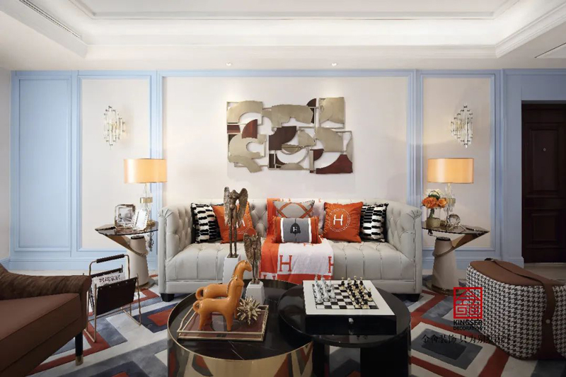 金舍裝飾~天海容天下樣板間137㎡美式風格實景圖案例,美式在歐式的基礎上做減項——不要雕花、不要護墻板、不要毫無作用的裝飾、不要虛偽的儀式感,只要自己住得舒服,放心地做自己。