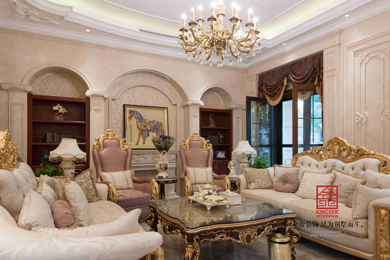 在這套鑫界王府600平米的歐式別墅中,家具選擇配置上,金舍的設計師選用典型的歐式風格家具,獨特的光澤使家具倍感歐式風韻,具有舒適與美觀并存的享受。