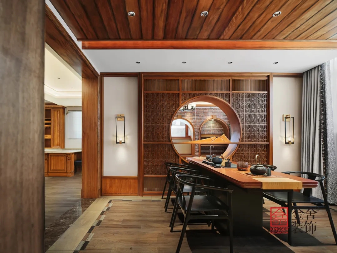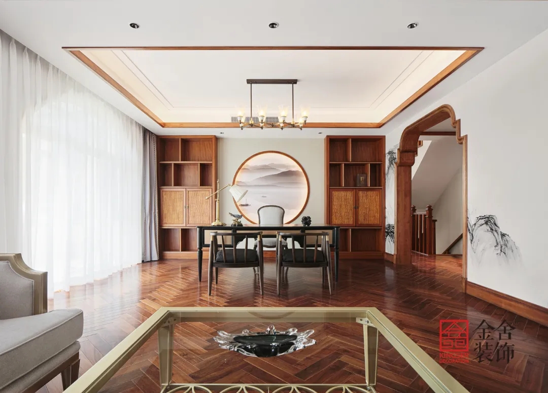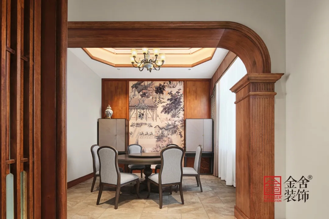 此案例為金舍裝飾-蓮花庭院600平米別墅中式風(fēng)格裝修實(shí)景。有一種美,穿越了數(shù)百年長(zhǎng)河,它是古建房屋上最初的輪廓。歷經(jīng)著風(fēng)霜雨雪、塵埃飛沙,卻依然靜臥于屋背脊檐之上。