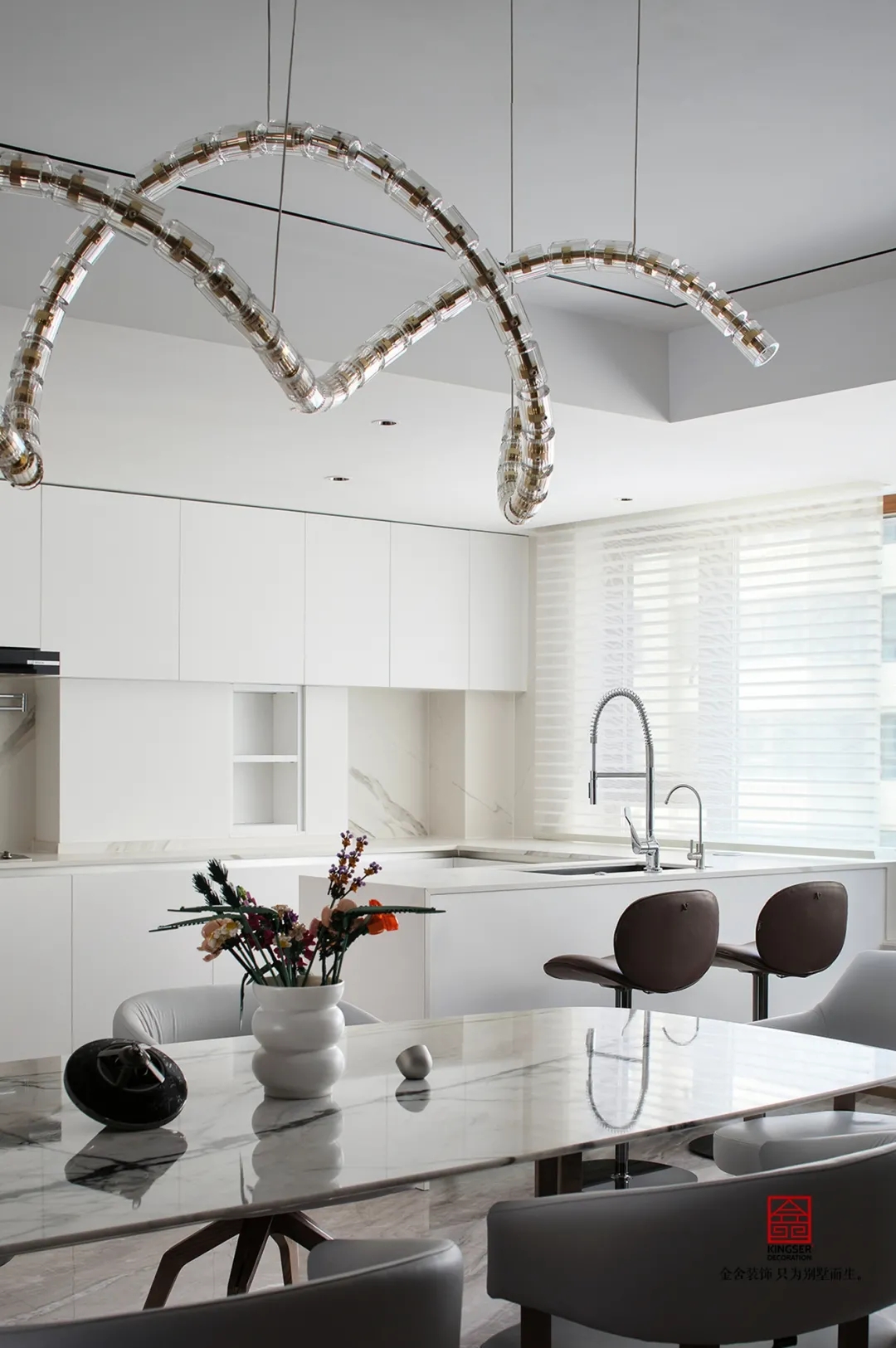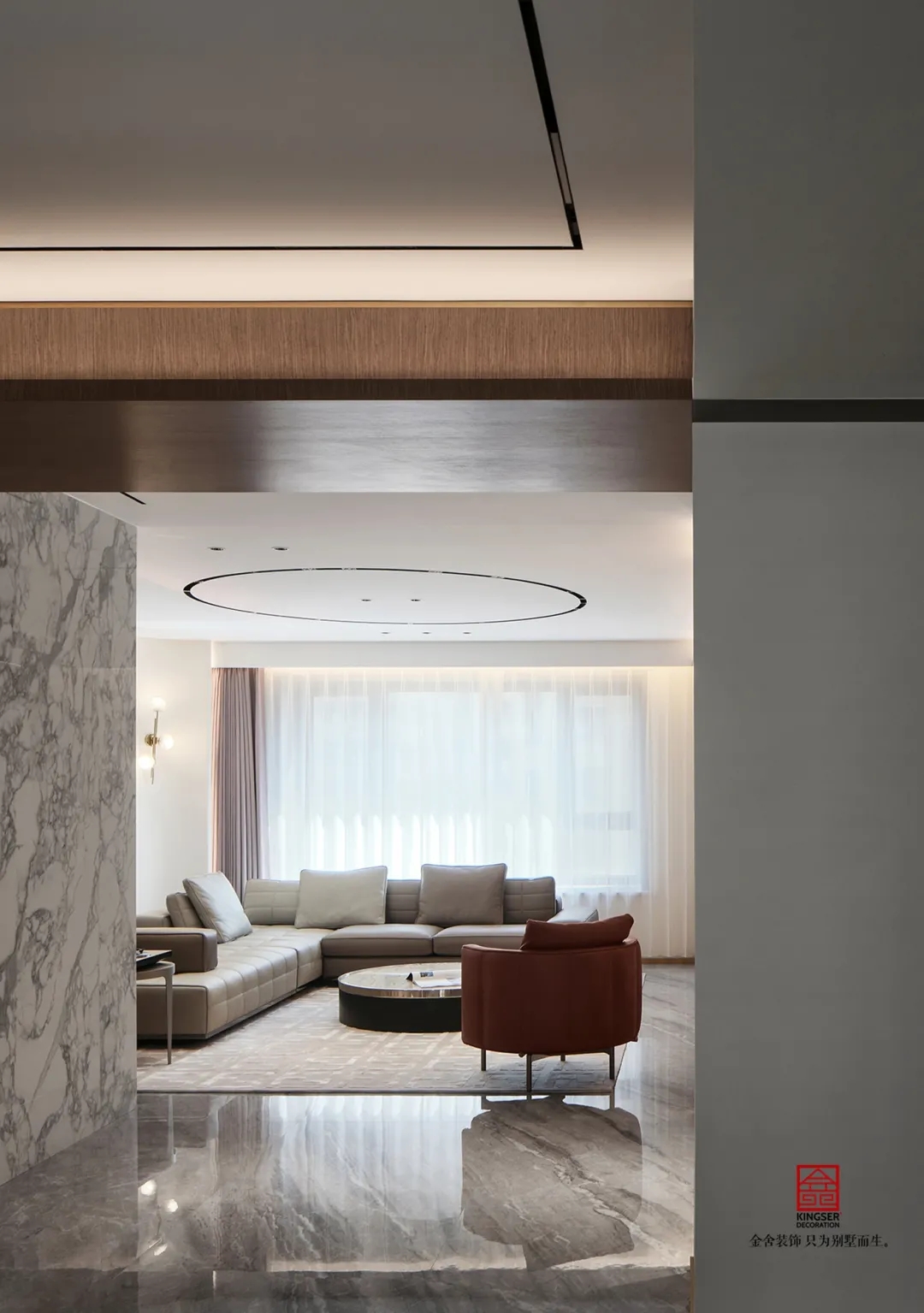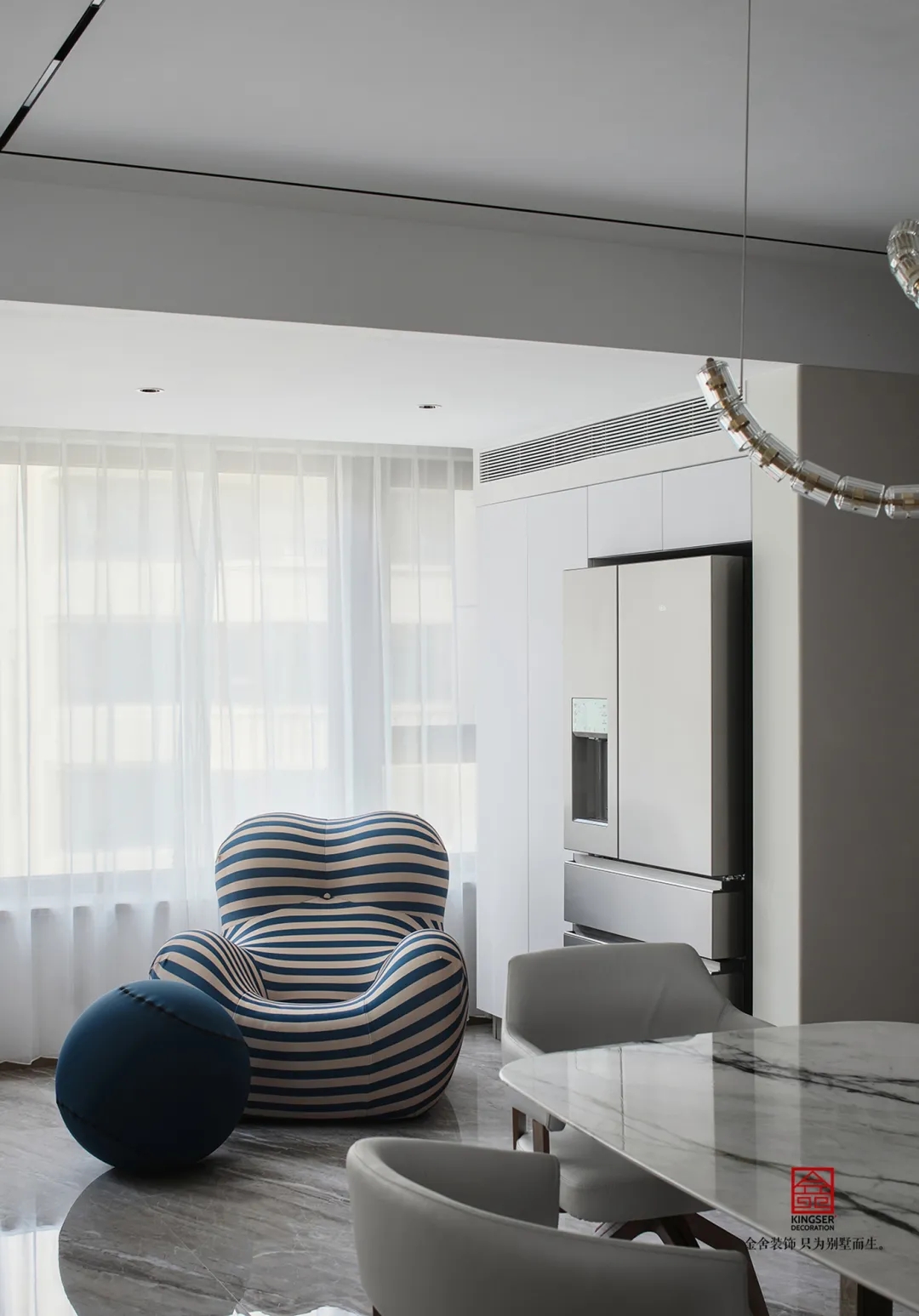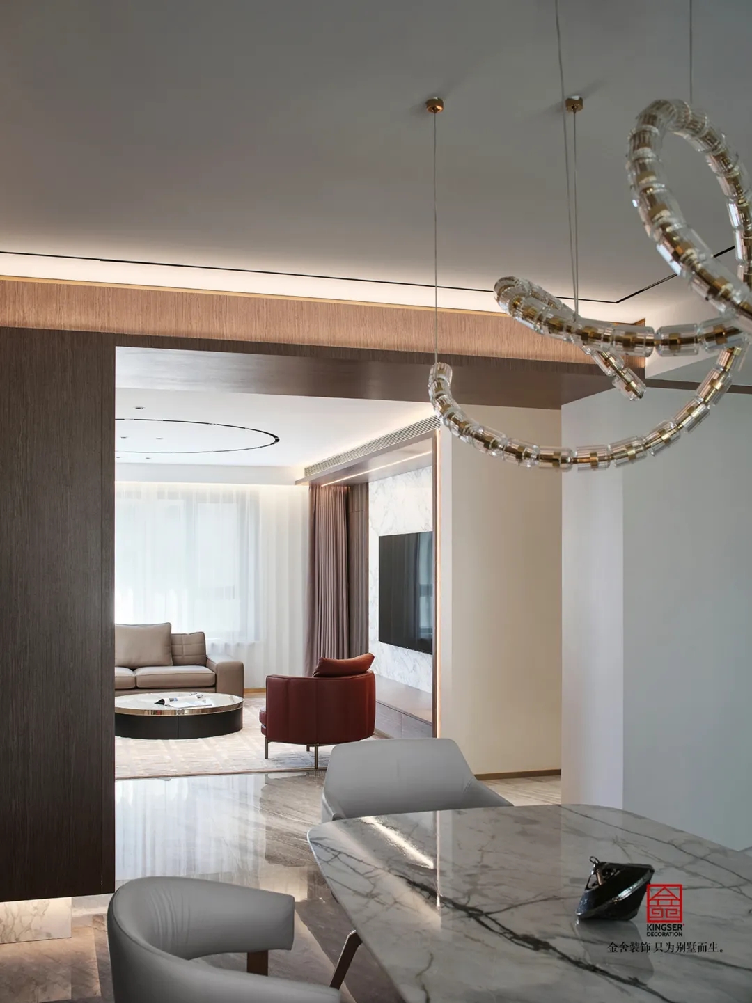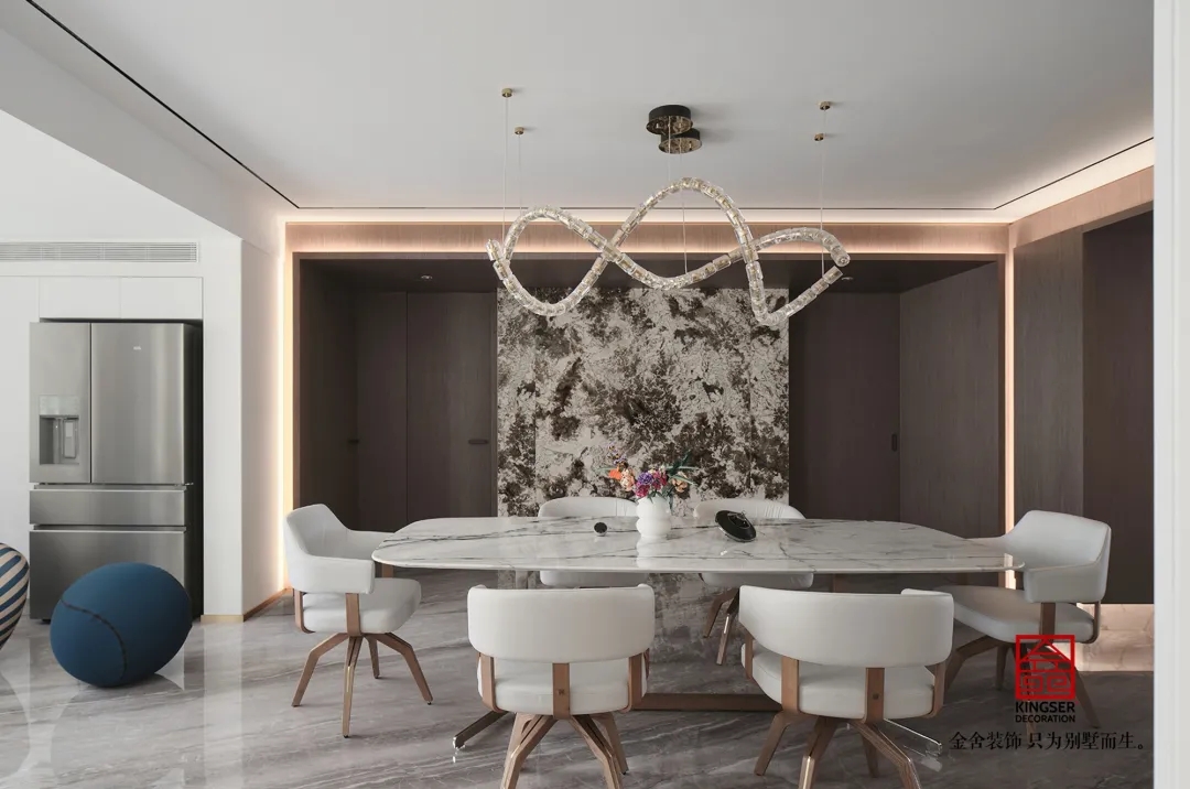 兼具現代生活的精致和居家功能的適用性來進行設計。用高雅的灰色調渲染空間氣氛,并不斑斕的色彩,卻襯托出不一樣的現代奢華空間,讓冷靜華麗之感噴發而出。