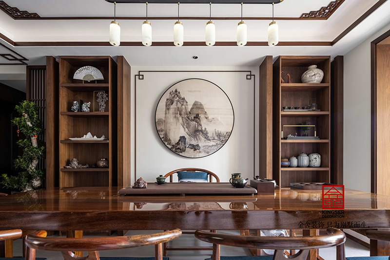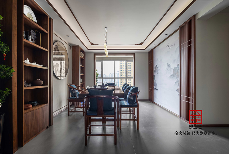 休閑會所130㎡新中式風格 整體空間功能集休閑、餐飲、茶藝、棋牌娛樂等于一體,新中式風格大氣又愜意,三五好友在此相聚,享受閑暇的時光