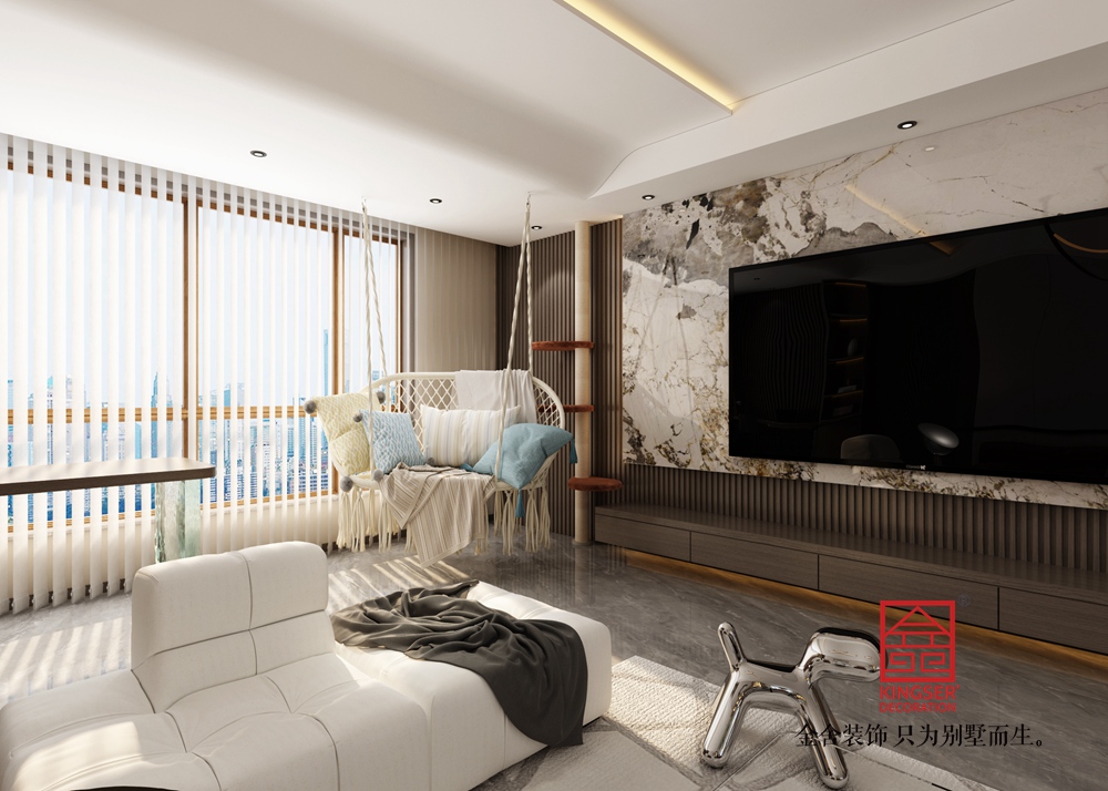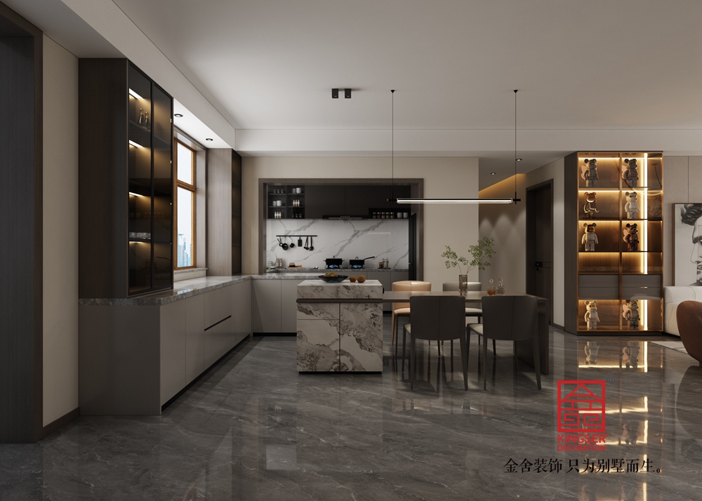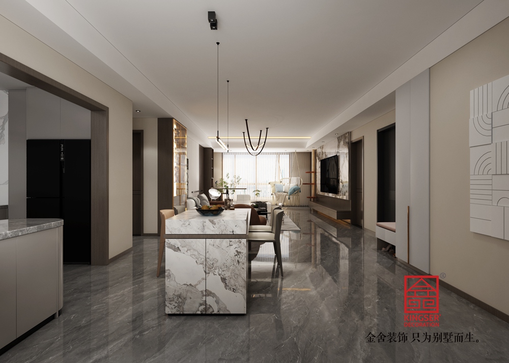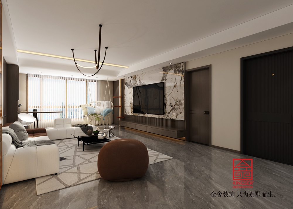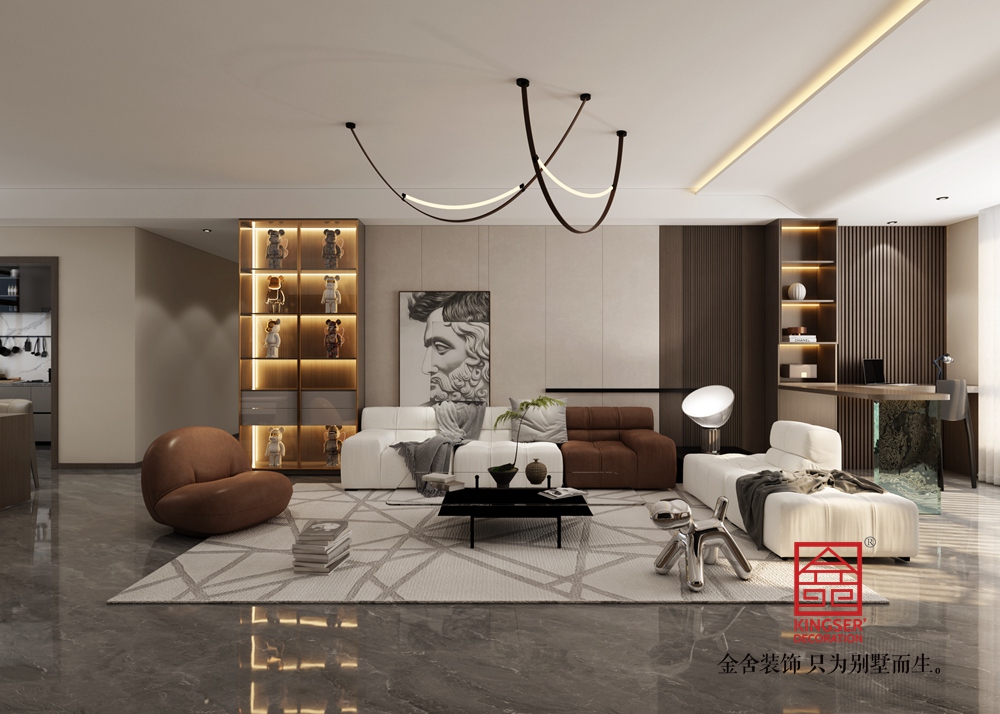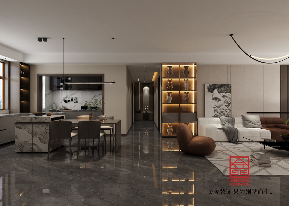 整體中性色調,內斂干凈,奢而不華高級灰色調與亮面光感相互調和營造一種靜謐優雅的空間氛圍,