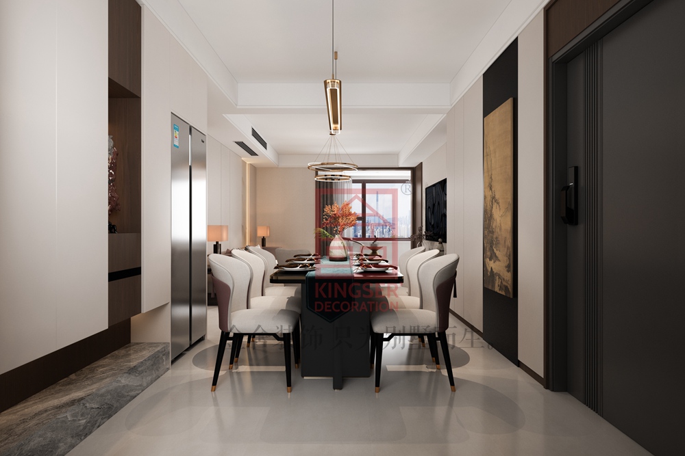設計說明:此案例為石家莊裝修公司-云和賦112平米現代簡約風格裝修效果圖。客廳整體色調以白色和灰色為主,營造出一種清新、明亮的空間感。白色沙發與灰色地毯的搭配,不僅提升了空間的亮度,還賦予了空間一種高雅而寧靜的氣質。墻上掛著的抽象藝術畫作,以紅色和棕色為點綴,為整個空間增添了一抹活力與溫暖,使得整個客廳在簡約中不失溫馨與個性。