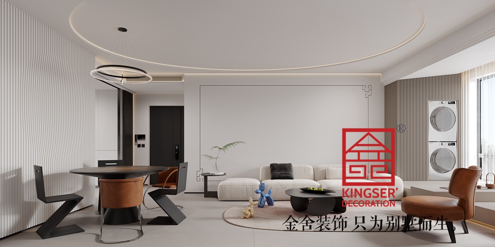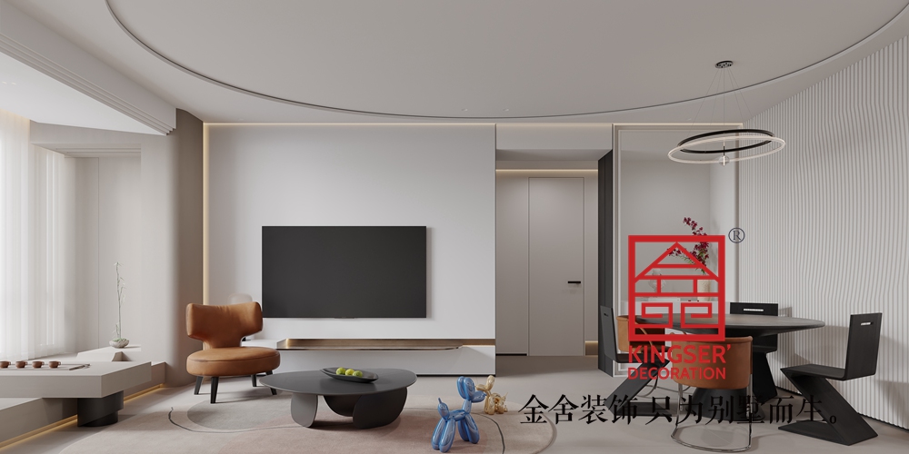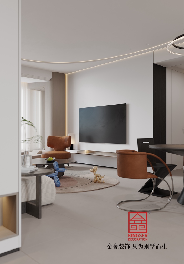 設計說明:此案例為石家莊裝修公司-國仕山130平米現代簡約風格裝修效果圖。整個房間以白色和米色為主色調,營造出一種清新、寧靜的氛圍。這兩種顏色不僅使空間看起來更加寬敞明亮,還能有效緩解視覺疲勞。深棕色的家具則為空間增添了一絲穩重與質感,與主色調形成鮮明對比,使整個空間更加立體、有層次感。