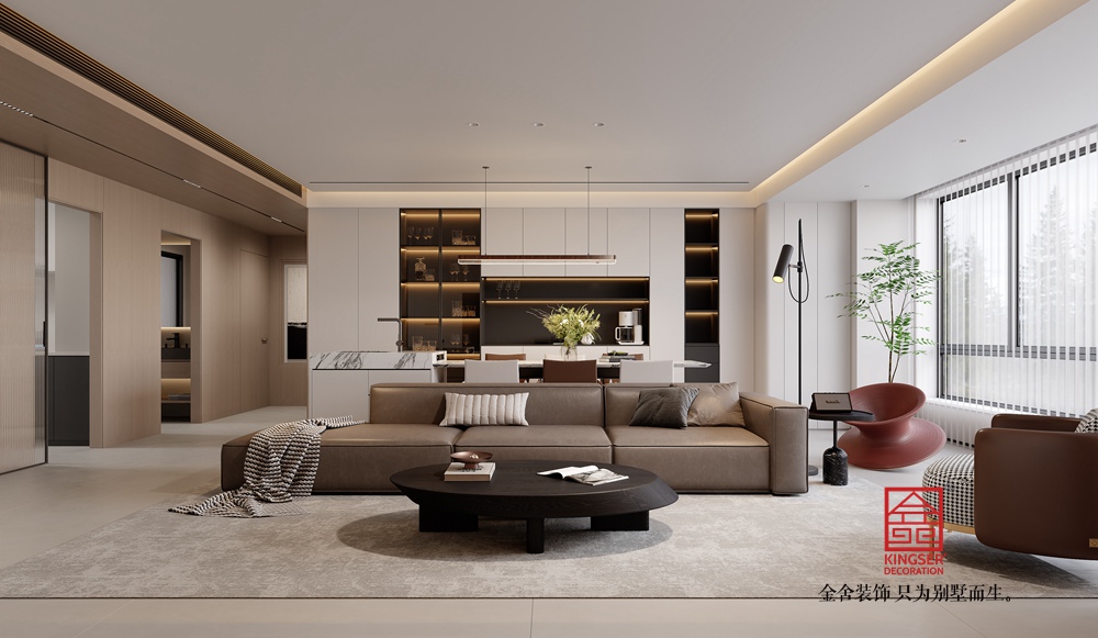 此案例為石家莊裝修公司-云歌朗樾159平米現代簡約風格裝修效果圖。本設計以現代簡約理念打造空間。整體色調簡潔明快,多運用中性色與低飽和度色彩,營造寧靜氛圍。家具造型流暢簡潔,注重功能性與實用性,摒棄繁雜裝飾。空間布局開放通透,利用線條與幾何形狀塑造層次感,使各區域相互交融又獨立分明。充足自然采光搭配簡潔燈具,光影交錯,賦予空間靈動性。裝飾元素少而精,以藝術畫作或綠植點綴,凸顯品味與格調,讓居者在簡約中感受品質生活。