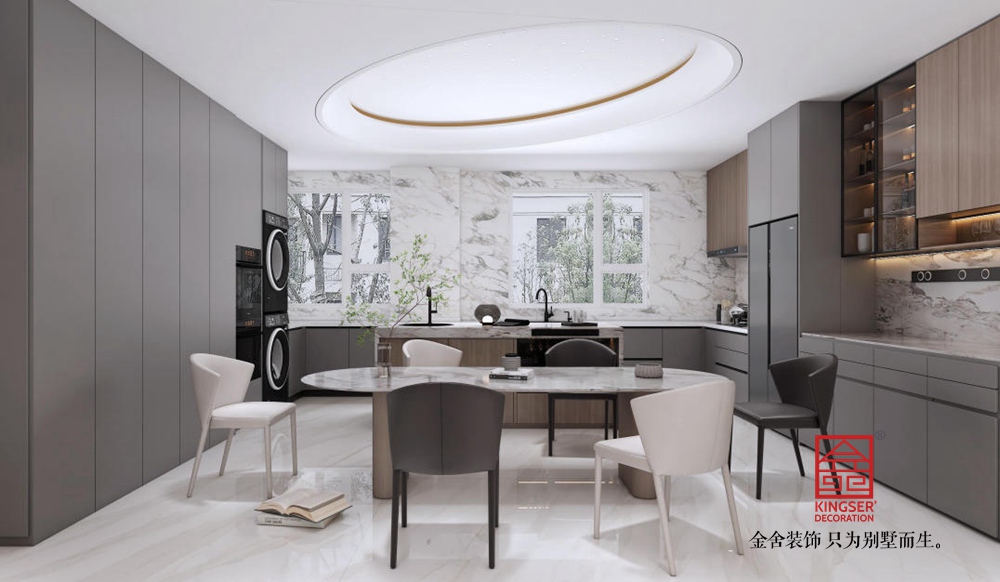 空間布局上,開放式格局讓交流無界。大幅落地窗引入充足自然光線,借景戶外綠意,延伸空間視野。