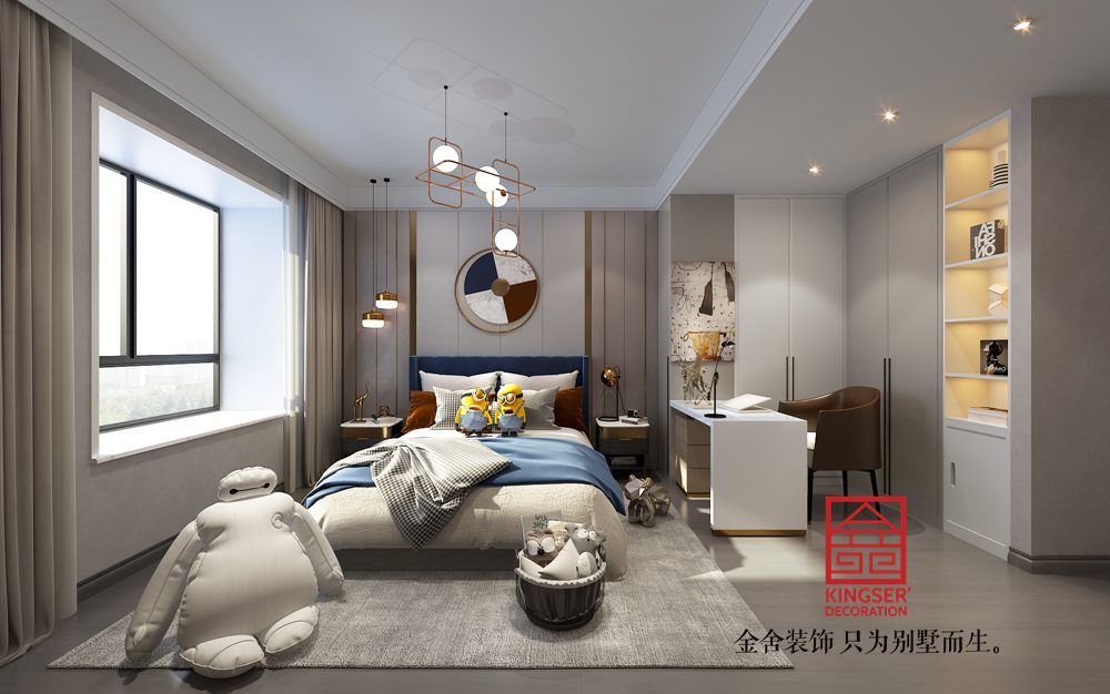造型簡潔,線條流暢的家具組合搭配,營造出穩定、協調、溫馨的空間感受,滿足現代年輕家庭的輕奢需求。沒有過于搶眼的造型,亦沒有豐富色彩的疊加,而是以最典型的現代簡約風格,令所有的色調統一,在工藝上,摒棄了傳統美式、法式風格稍顯復雜的雕刻與裝飾,取而代之的是在注重獨立的原創設計基礎上,采用實色漆套色,革新了色彩的搭配模式。同時,細節處流露出精致的生活情調。在視覺上舍棄張揚,通過對線條與色塊的巧妙應用,營造出輕松的空間氛圍,傳遞“輕奢華、新時尚”的生活理念。奢侈、生活、品味、享受”之間的平衡,在影響與被影響之間找到突破點,整體比例和諧,造型精煉,通過細節和色彩造型、勾勒出一個精致優雅的輕奢空間,彰顯低調與浪漫。