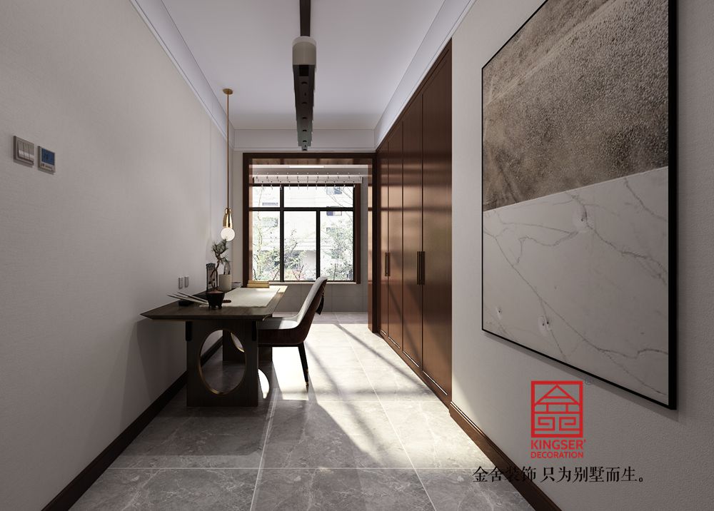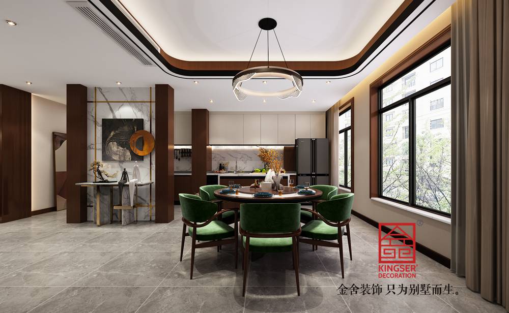 設計說明:此案例為金舍裝飾-融創中心217平米中式風格裝修案例。風雅吳地,水墨江南,留下無數文人墨客的行蹤,也留下人們印象中的一幅濃淡設一的水墨長卷,這就是我們要再此案中變大的思維和意境,據業主對淡雅、自熱的生活追求,我們大量運用了帶有濃郁蘇州園林的符號語言,去繁存簡,借蘇州園林的設計手法,再也中的房間中進行“借景話室”,力求用一種新“語言”來詮釋中式,眾多的木色運用,倍具文人氣質,色調文化的運用結合人文氣質的符號語言,把兼備現代與傳統的新中式發揮的淋漓盡致。