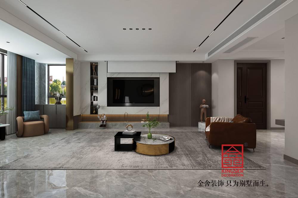 此案例為金舍裝飾-東南智匯城191平米現代輕奢裝修案例。本案整體為現代輕奢風格,整體設計追求空間平衡,對設計語言精心構建,在獨特的現代理念中力求生活的本源:知性,優雅,具有人文氣息。為整個設計帶來輕奢視感。色彩上,用高級灰作為主色調,奠定了空間沉穩的底色。與皮質,金屬,巖板,木材等不同材質的結合,既保持著整齊的視感,又將高級氣質凸顯。