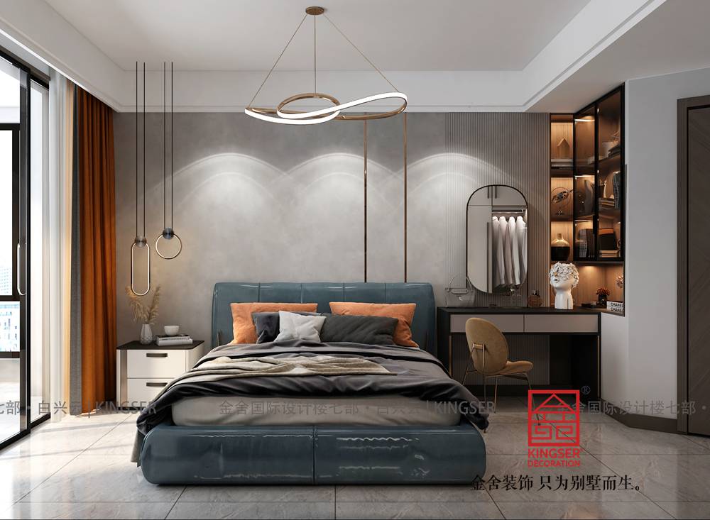 臥室設(shè)計考慮獨處空間的舒適,以低飽和度的暖灰色調(diào),利于睡眠舒適感極高,呈現(xiàn)主人高雅的氣度。身居人境,卻已忘世,在輕柔薄淡的日光里,超然世境之外,佇聽空間與心靈的淺吟輕談,融現(xiàn)代化的生活方式與藝術(shù)的生活氣息于一室