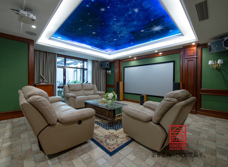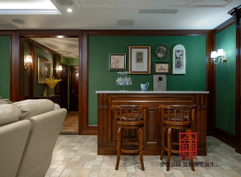 負一層是休閑影音區域 業主希望這里有美式酒吧的影子,喜歡那古樸的木質結構中有一抹清新的綠色 復古且活潑。