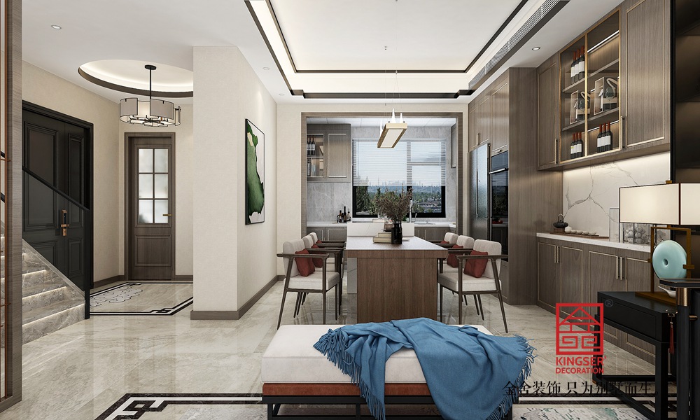 此案例為石家莊裝修公司-漢王府200平米新中式風格裝修效果圖。項目采用新中式風格,汲取古韻歷史文化客廳以當代藝術筆觸傳古承今,凝練傳統文脈精髓,承襲中軸對陣儀范,用中正端雅的線條,排布禮序莊重的基調??蛷d闊綽端正,摒棄傳統中式的沉重感,保留中式的對稱美,凸顯視覺開闊感。餐廳將餐桌和島臺融合,北方的冬天,一家人圍坐在一起,喝一杯紅酒或飲一杯清茶,中西文化竟如此的和諧交融。主臥以中式原木色系為主要基調,點綴以緋紅抱枕,視覺上顏色高度和諧,悄然流露一份典雅與精致的美感。兒童房的設計以簡潔私密和其喜好搭配時尚的元素打造獨立個性的空間,享受屬于自己的自由空間。