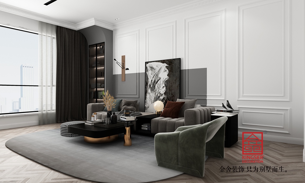 設計理念:此案例為金舍裝飾- 國赫天著151平米法式風格裝修效果圖。本期案例以法式輕復古為定位,追求清新浪漫 舒適自然。墨綠色的點綴為空間的家居氛圍增添活力。